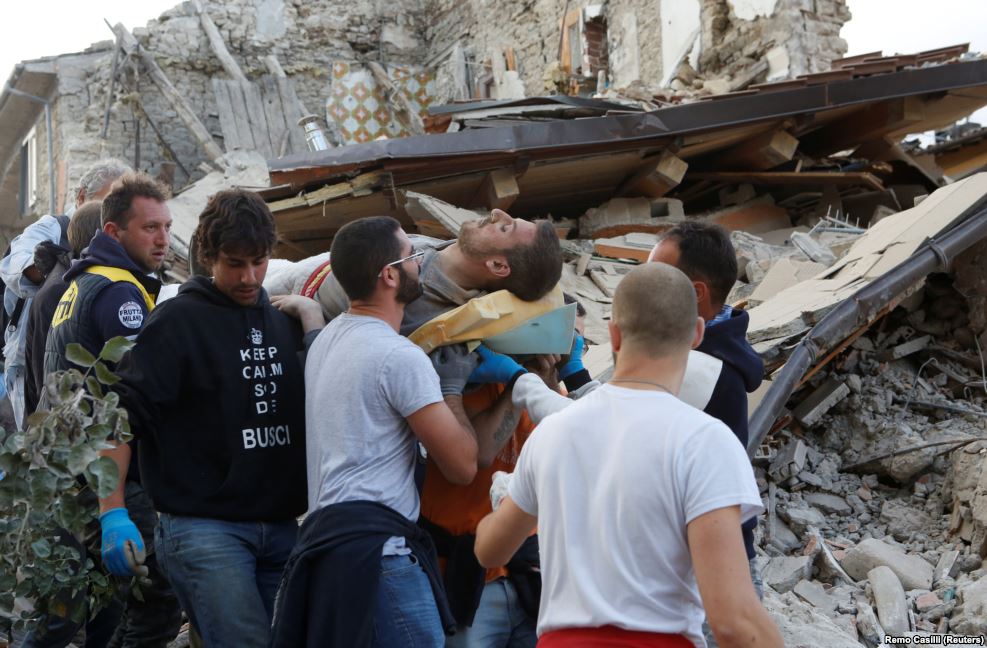 Аматриче шаарынын мэри Стефано Петруччи жергиликтүү радиостануцияга шаар борборундагы имараттар кулап, урандылардын астында адамдар калганын маалымдады.