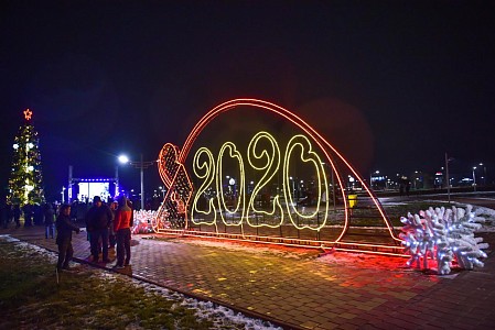 Главная фишка вечера стала, конечно, необычная праздничная инсталляция символа наступающего года - Белой мыши.