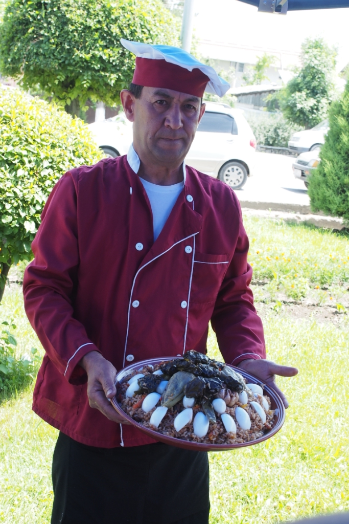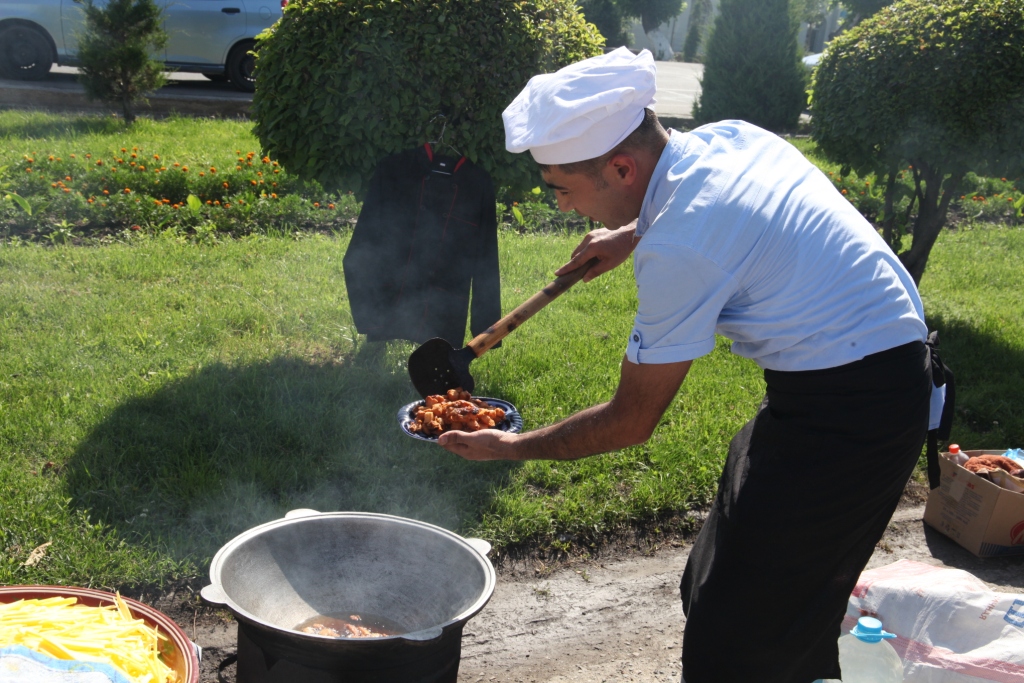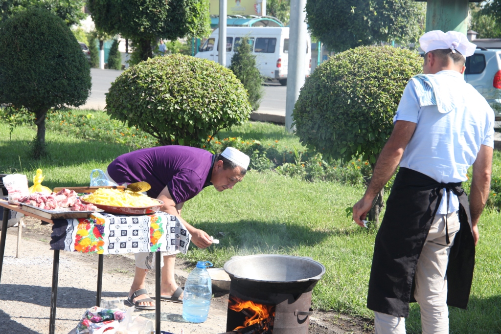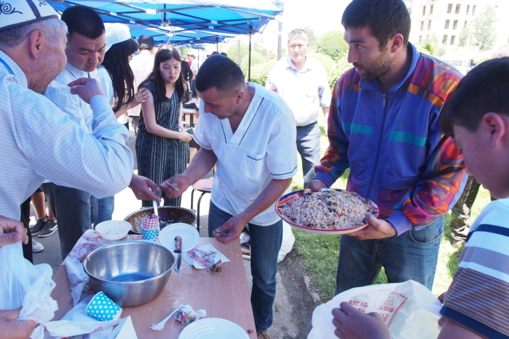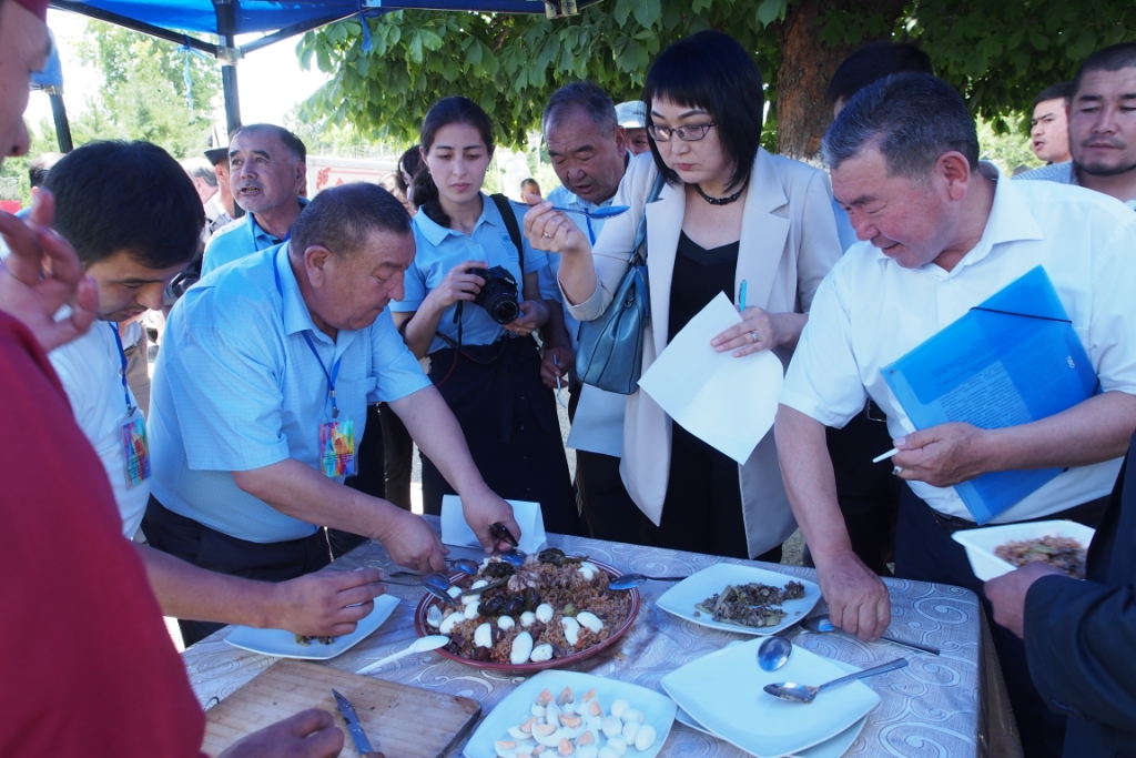 Плов в южных областях Кыргызстана является основным и любимым блюдом на столе, причем в каждом отдельном регионе в приготовлении плова используют свой сорт риса по уникальному рецепту. На фестиваль были приглашены повара из разных регионов страны, поэтому у гостей фестиваля была возможность продегустировать множество видов этого вкуснейшего блюда.
