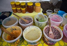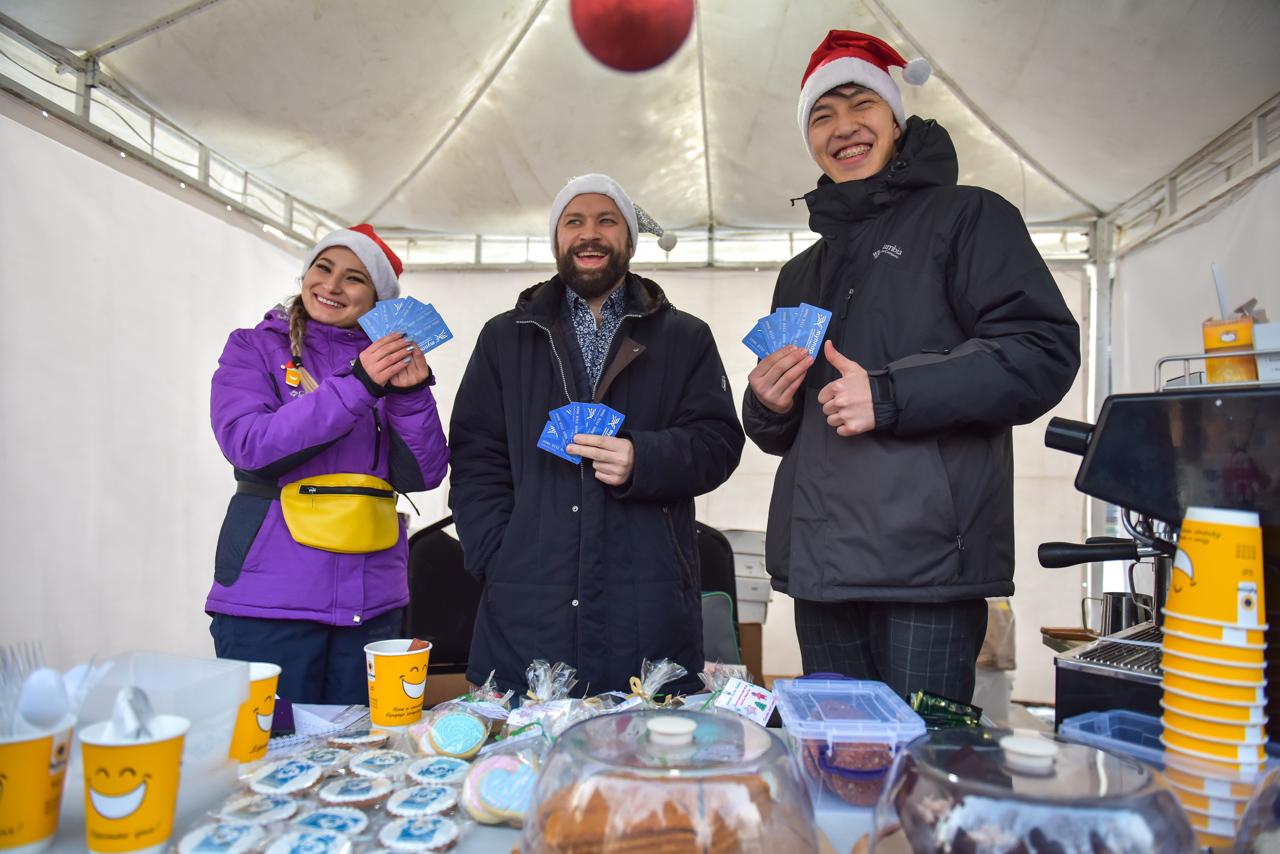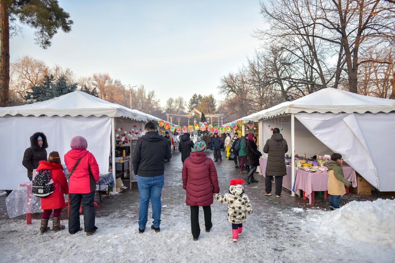 На ярмарке каждый сможет приобрести необычные подарки на Новый год для близких и друзей: украшения, сладкие пряники, посуда ручной работы, сувениры, эко-продукты, мед, чаи. Гвоздь сезона — фирменный горячий кофе, шоколад и волшебные печенья с логотипом мэрии от Бублика, а также пока бесплатные карточки «Тулпар» для проезда в общественном транспорте.